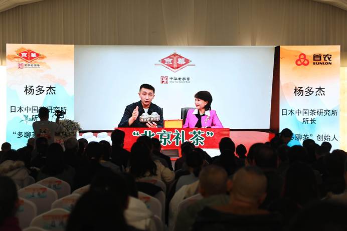 活动现场,全新宣传片《从传承到焕新——京华故事》高光呈现,全面展现了京华茶业的发展脉络和“十四五”期间的发展成果。日本中国茶研究所所长、“多聊茶”创始人杨多杰先生将其珍藏的80、90年代京华老产品、老物件,捐赠给京华茶业,展现了社会各界名人对京华茶业发展的深切关注与殷殷期盼。京华茶业文化顾问、北京曲艺家协会副主席、联珠快书非遗传承人王玥波与北京曲艺家协会副主席、中国煤矿文工团说唱团副团长、滑稽大鼓非遗传承人应宁到场助阵,为活动营造了欢快浓厚的京味儿文化氛围。